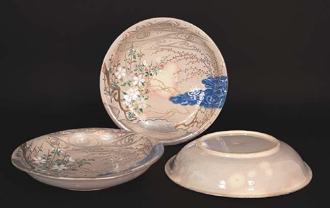 #014 絵唐津三足向付 ¥450,000~ 付木箱(桐) 135×165×7 口縁金銀補修 甕屋ノ谷窯