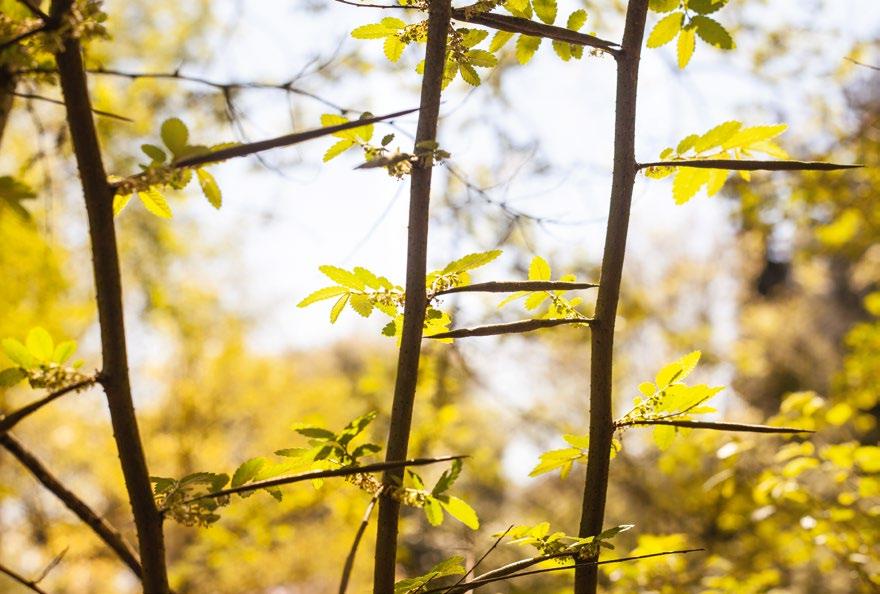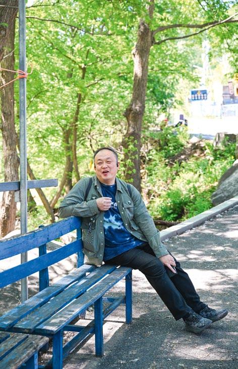 Um etwas als Wald zu bezeichnen, braucht es meiner Ansicht nach vor allem sehr viele große und kleine Bäume, die gemeinsam wachsen. Und außerdem noch andere Arten von Pflanzen, die zusammen mit den Bäumen ein vitales Biotop bilden. Bestenfalls kommt noch Wasser hinzu, denn mit Wasser gibt es eine Seele – wobei das im Norden etwas schwieriger ist. Ich bin in einem Bergbaubezirk aufgewachsen, wo Fabrikanlagen, Schul- und Krankenhausgebäude und Wohnhäuser an Hängen gebaut und die Wege über die bewaldeten Hügel Alltag sind. Daher ist mir der Wald sehr vertraut. Beim Spazieren im Wald kann ich mich gut entspannen. In Peking gibt es viele sogenannte »Waldparks« und egal, wie groß sie sind oder wie weit weg, macht es mich glücklich, dass es sie gibt. 我觉得要能称之为森林,首先,要有非常多的树, 高低错落的树生长在一起。其次,还有其他各种 伴生的植物,它们和树木在一起构成一个非常有 生机的区域。最好还要有水,这一点在北方可能 不容易,但是有水才有灵性。我从小在矿区长大, 我们矿区的厂房、校舍、居民楼、医院等建筑都是 依山而建,穿行山林是家常便饭,所以森林让我 感觉非常亲切。最后,走进森林会让我感到放松。 北京有不少冠名“森林”的公园,它们的存在都给 了我们幸福感。