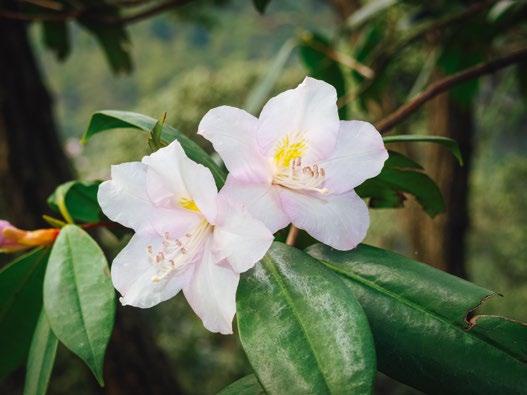 Zartrosa Rhododendron und eine giftige grüne Bambusotter – die Artenvielfalt in Chinas Wäldern ist beeindruckend hoch. 淡粉色的杜鹃花与有毒的绿色竹叶青蛇—— 中国森林中的物种多样性令人印象深刻