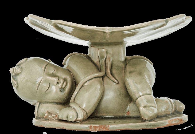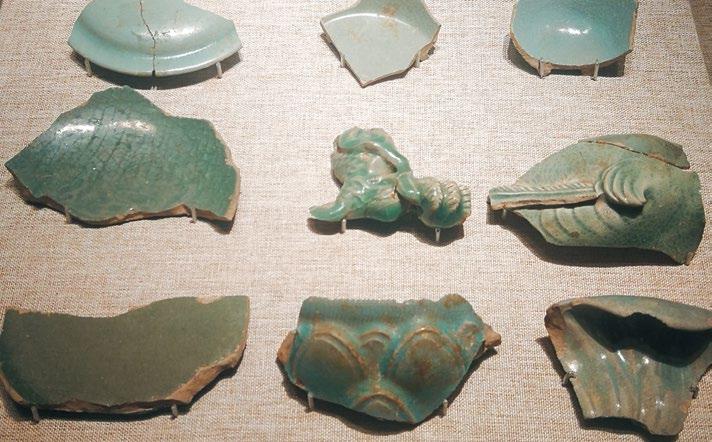 die auf den ersten Blick eher unscheinbare grau grüne »RuWare«, ein in der SongZeit hergestelltes Seladon, besonders verehrt wird? Sie wurde ausschließlich am Hof der Nördlichen Song Dynastie (960–1126) in Kaifeng benutzt und von den späteren Kaisern der Qing Dynastie gesammelt. Heute existieren nur noch etwa einhundert unversehrte Objekte in verschiedenen Museen und Sammlungen. 宋朝的汝窑青瓷看似不起眼,但却备 受推崇?它是定都汴京(今开封)的 北宋(960 -1127)朝廷的特供品,后 来被历代清朝皇帝收藏。如今,各大 博物馆和收藏中保存完好的汝窑青 瓷数量仅有大约一百件。