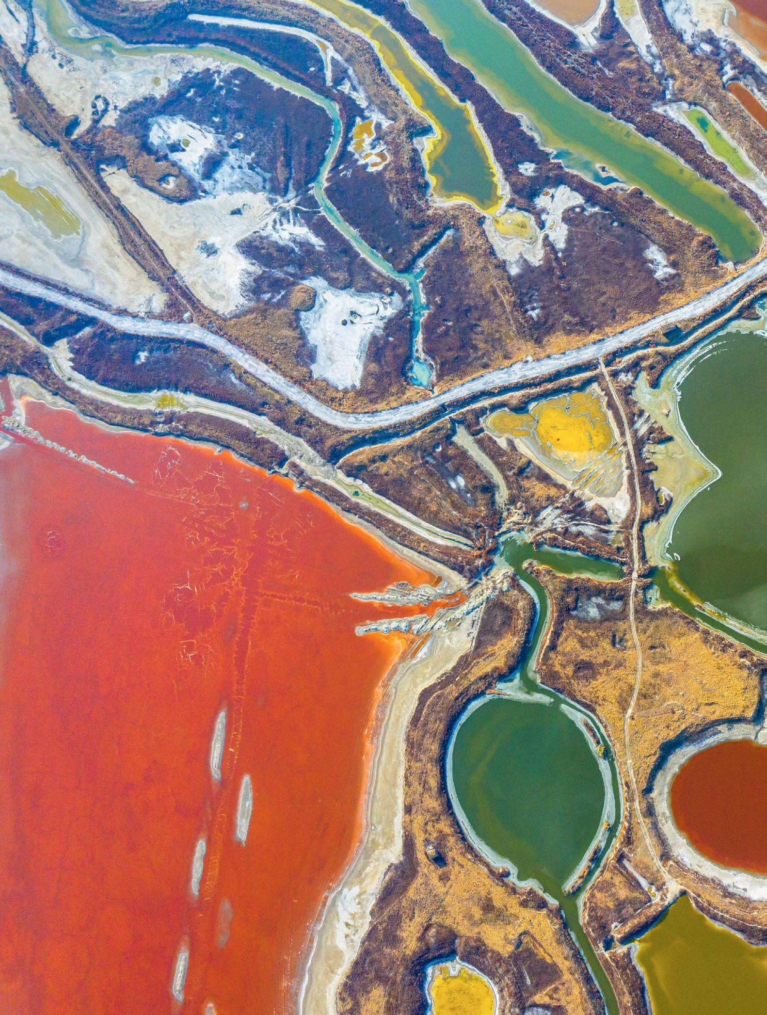 Wie die Farbpalette eines Kunstmalers wirken die Salztümpel des Yuncheng Sees in der nordchinesischen Provinz Shanxi. Das Wasser färbt sich vor allem in den Sommermonaten gelb, orange, rosa, lila, grün, braun und blau. Verantwortlich dafür ist eine Algenart, Dunaliella salina, die in extrem salzhaltigen Gewässern vorkommt. Auch wenn der 132 Quadratkilometer große Salzsee von Yuncheng als das »Tote Meer Chinas« bekannt ist, können hier im Gegensatz zu seinem Namensvetter im Nahen Osten Pflanzen und Tiere überleben. Der See ist für seine Salzproduktion, das sogenannte Xie-Salz, berühmt, hat sich aber in den vergangenen Jahren aufgrund seiner leuchtenden Farben von einer Salzproduktionsstätte zu einem Paradies für Hobbyfotografen und Touristen entwickelt.