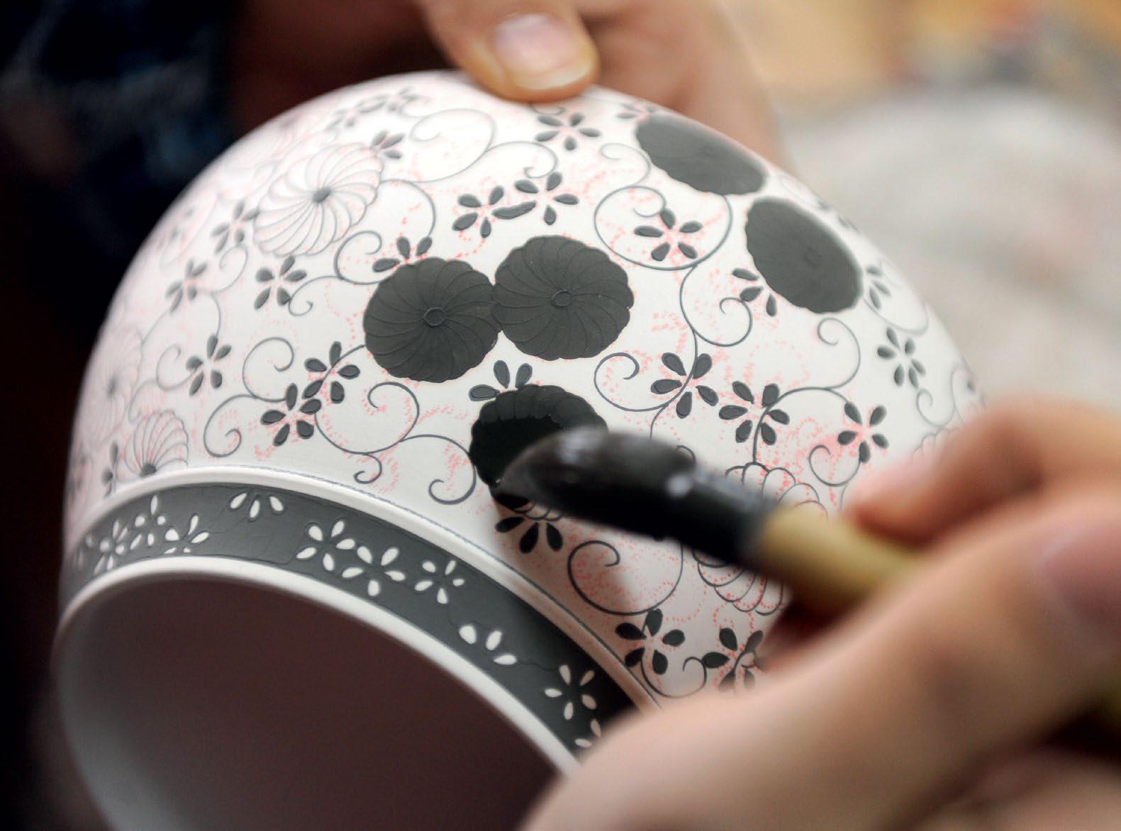 Schwarz und weiß sind die typischen Erkennungsmerkmale der Cizhou-Keramik. Seit der Song-Zeit (960–1279) befand sich im Süden der Provinz Hebei um das heutige Handan die größte Konzentration sogenannter »Volksbrennöfen«. Auch heute zieht die Gegend wieder junge Töpfer und Töpferinnen an. 黑白对比的装饰风格是磁州窑陶瓷的独特标志。磁州窑 的中心地带位于河北省南部的邯郸地区。磁州窑历史久 远,唐朝时的制作工艺已趋成熟,自宋代以来此地的陶 瓷生产一直发展壮大,成为中国古代北方最大的 民窑集中地。时至今日,这片土地再次成为 年轻陶艺家们的创作热土。