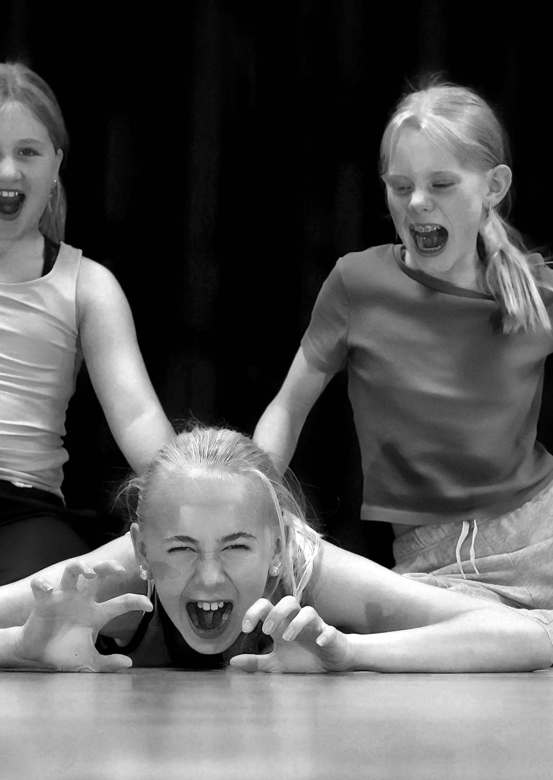 Når elevene har fått utforsket og øvd på de ulike elementene, kan man sette sammen de tre hovedøvelsene til en helhet som utøves med sømløse overganger som en forestilling.