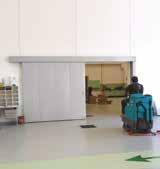 Fire resistant doors either sliding or with wings divide and insulate spaces within the building in case of fire.