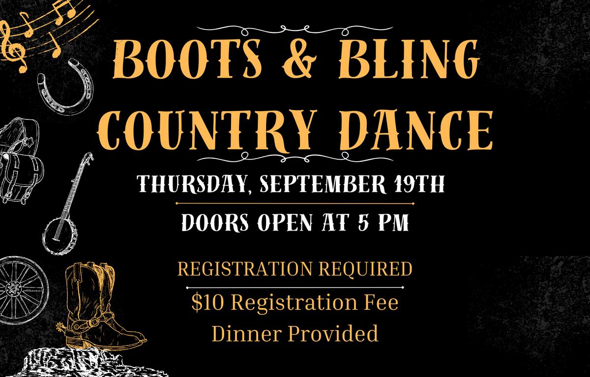 5:00 p.m. Boots & Bling Country Dance Gym Closed after 12:15 p.m.