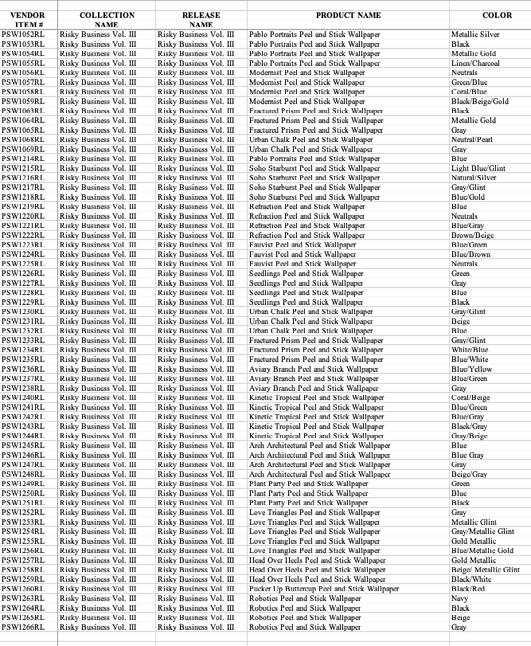 Unless noted with an asterisk (*), all double rolls of wallpaper in this collection are: