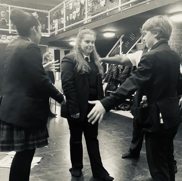 Year 10 GCSE Drama students have been preparing drama pieces using the format and conventions of theatre in education (TIE), which is the style of educational theatre that often visits schools. They will be presenting their TIT plays to the students in Mr Wilson's tutor group, 7Li. The Y10s did research into the Y7s, to find out how they felt about certain issues, such as starting a new school and being yourself. The Y7s will be able to see how their own ideas and opinions have been used to create the drama pieces.