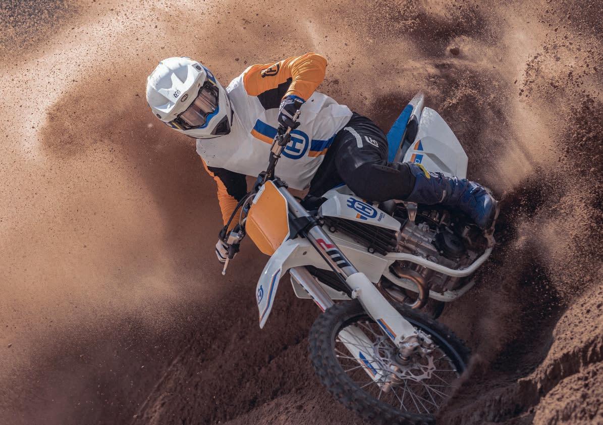 Attention Exemple à ne pas suivre ! Les pilotes représentés sont des pilotes de moto professionnels. Les photos ont été prises sur des circuits fermés ou sur des routes fermés à la circulation. Husqvarna Motorcycles attire l’attention de tous les motocyclistes sur l’importance de porter les vêtements de protection prescrits (casque certifié, gants, blouson, pantalon et chaussures) et la nécessité de rouler de manière responsable, en conformité avec le code de la route.