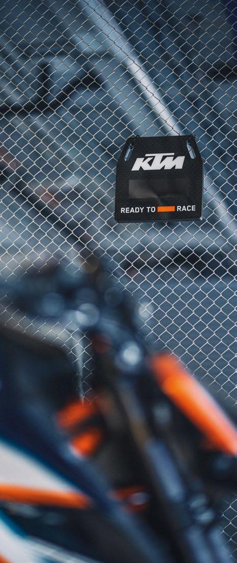 Bestellung bzw. Kauf eines der angebotenen Produkte oder Modelle bei Ihrem örtlichen KTM-Händler Informationen zum jeweils aktuellen Ausstattungs- und Lieferumfang ein. WARNUNG Nicht zur Nachahmung geeignet! Bei den abgebildeten Fahrern handelt es sich um professionelle Motorradfahrer. Die Bilder sind auf abgeschlossenen Rennstrecken oder abgesperrten Straßen entstanden. KTM macht alle Motorradfahrer darauf aufmerksam, die vorgeschriebene Schutzbekleidung zu tragen und verantwortungsbewusst sowie im Einklang mit den relevanten und anwendbaren Bestimmungen der Straßenverkehrsordnung zu fahren.