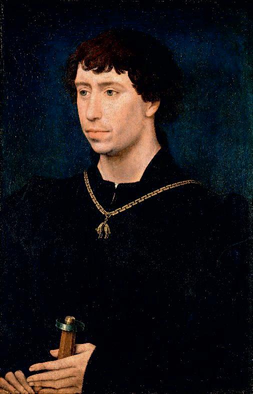 Jean expanded the power of Burgundy and successfully asserted himself against his main opponent, Louis of Orléans, the younger brother of the mentally ill French King Charles VI and his supporters, the Armagnacs. Jean had Louis of Orléans murdered in Paris in 1407. Although a reconciliation with the House of Orléans took place in 1410, the conflict continued to smolder, whereby unity would have been advisable in view of the Hundred Years’ War with England. On September 10, 1419, Duke Jean was lured by the Armagnacs to the Yonne bridge near Montereau and stabbed in retaliation for the murder of Louis of Orléans. The Portrait of Jean the Fearless in the Kunsthistorisches Museum in Vienna shows the second Duke of Burgundy leaning on a prié dieu with his hands clasped, draped with a hanging showing the coats of arms of the Burgundian Valois and the Flemish Lion.