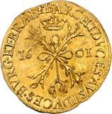 Catalogue descriptions do not constitute contractually agreed warranties within the meaning of § 434 German Civil Code (BGB) and serve merely for identification and definition of the goods. The description of condition is based strictly on the customary gradings applied by the German Coins Trade and is subject to personal verification. Items are warranted as genuine, unless information to the contrary is provided in the catalogue or during the auction. Here our liability to the buyer is limited to the purchase price. We accept no further liability statutory or other in respect of any item included in the catalogue.