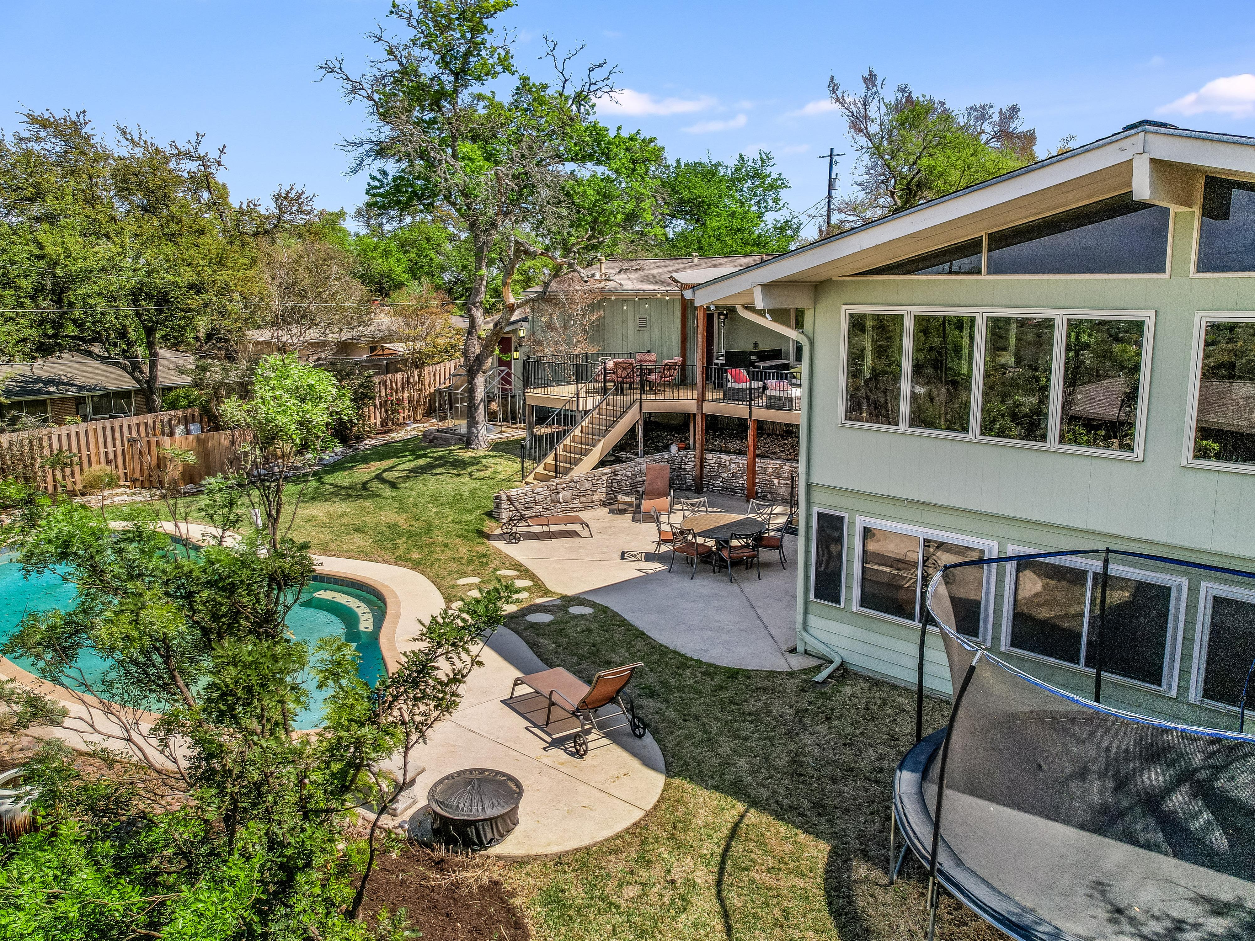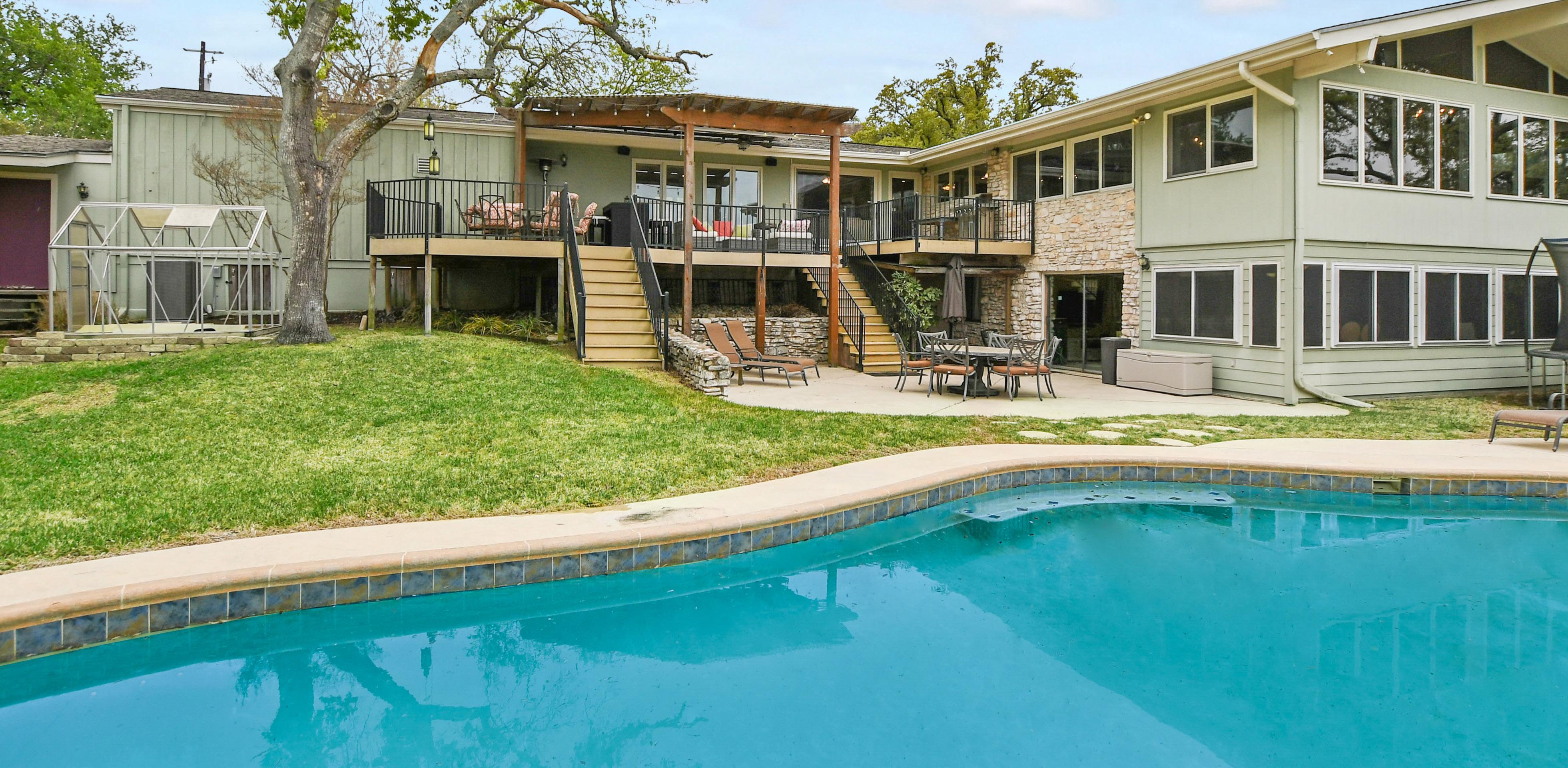 Within 10 minutes of Downtown and the Domain, this mid-century modern five bedroom, four bathroom home in Highland Park West is ready for it’s new adventure. Lovingly cared for with professionally-designed updates, this 4,517 square foot home has generously-sized bedrooms and living areas with views off the back deck. Downstairs in the walk-out basement, you will find an additional bedroom, bathroom, and game room complete with bookshelves, a pool table, and lots of space with sliding doors to the patio and backyard. On a half acre lot, there is lots of space to enjoy.