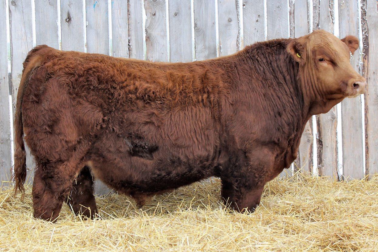 » Well balanced bull with a wide top, loads of hair and a good disposition have made him a pen favourite. He’ll be easy to find sale day !