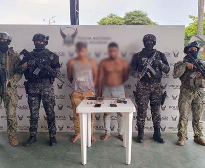 DOS detenidos y armas incautadas en operación policial en Esmeraldas.