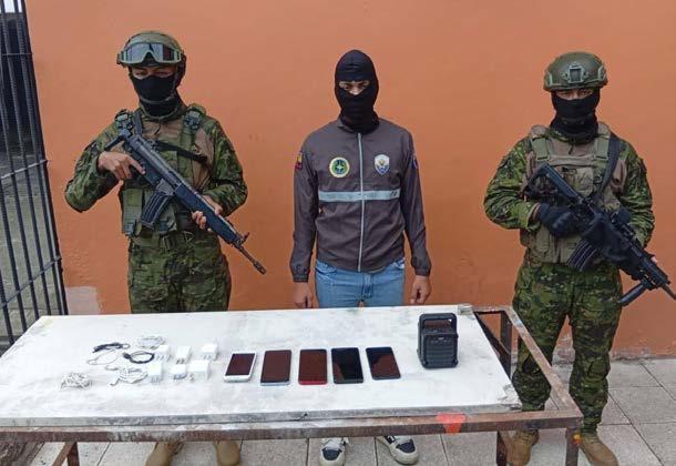El Ejército Ecuatoriano realizó un operativo en la cárcel de Esmeraldas, decomisando celulares, cargadores y un parlante.