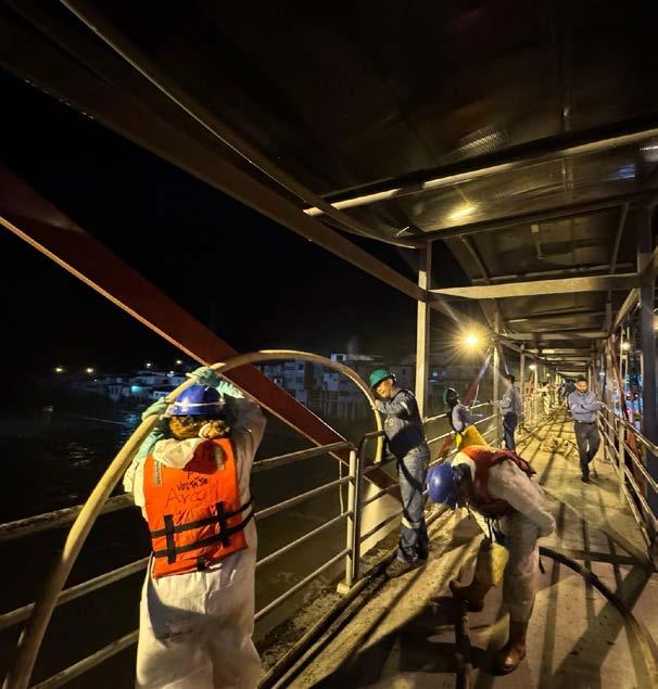 Ante el nuevo derrame, Petroecuador instaló siete barreras adicionales para contener el crudo en el río Beach y evitar que llegue a los afluentes Blanco y Esmeralda. Al día siguiente, se constató el desplazamiento de tuberías, la destrucción de barreras y la pérdida del petróleo contenido. Más de 50 trabajadores de una empresa contratada por OCP iniciaron labores de emergencia, colocando barreras plásticas, absorbentes y desengrasantes en el agua antes de retomar la limpieza de las orillas.
