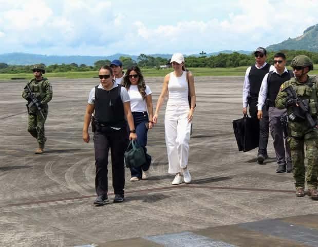 #Esmeraldas La primera dama Lavinia Valbonesi, en representación del Proyecto Ana, lideró la entrega de raciones alimenticias a pescadores de la provincia de Esmeraldas, gravemente afectados por la contaminación tras el derrame de crudo en el cantón Quinindé. La acción busca mitigar los efectos económicos y sociales del desastre ambiental, proporcionando alimentos básicos a familias que dependen de la pesca para su sustento.