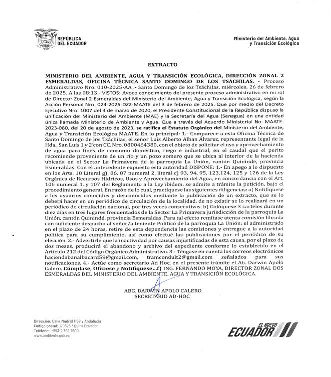 Extracto de publicación De acuerdo a lo establecido en el CAPÍTULO III, Artículo 10, numeral 6, de LA ORDENANZA SUSTITUTIVA QUE NORMA LA REGULARIZACIÓN Y ADJUDICACIÓN ADMINISTRATIVA DE LOS BIENES MOSTRENCOS DEL CANTÓN MUISNE. REGISTRO OFICIAL No. 979 de fecha 27 de julio 2023.