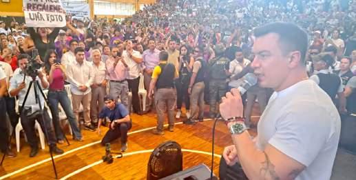 Palabras de apoyo Napoleón Cabrera , presidente de la Confederación Nacional del Transporte Terrestre del Ecuador, subió a la tarima para asegurarle a Noboa que todas las modalidades del gremio quieren su continuidad en Carondelet.
