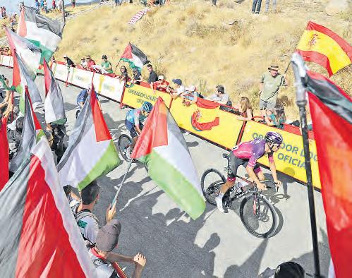 ▲ Al grito de “¡no es una guerra, es un genocidio!” y “palestina libre”, alrededor de 100 mil personas protestaron en la tradicional competencia del ciclismo en españa. La última etapa fue cancelada cuando el pelotón entró en la ciudad y se enfilaba