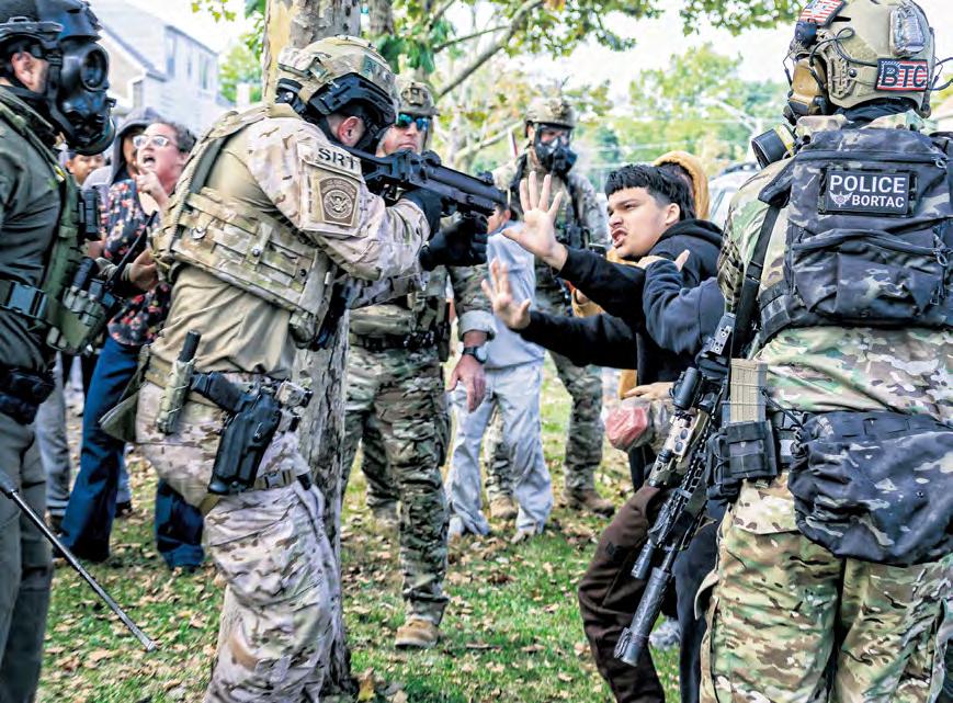 Decenas de residentes en East Side protestaron ayer contra los operativos del ICE, mientras se prepara la nueva protesta nacional para el sábado en repudio a las políticas de Trump. Foto Ap
