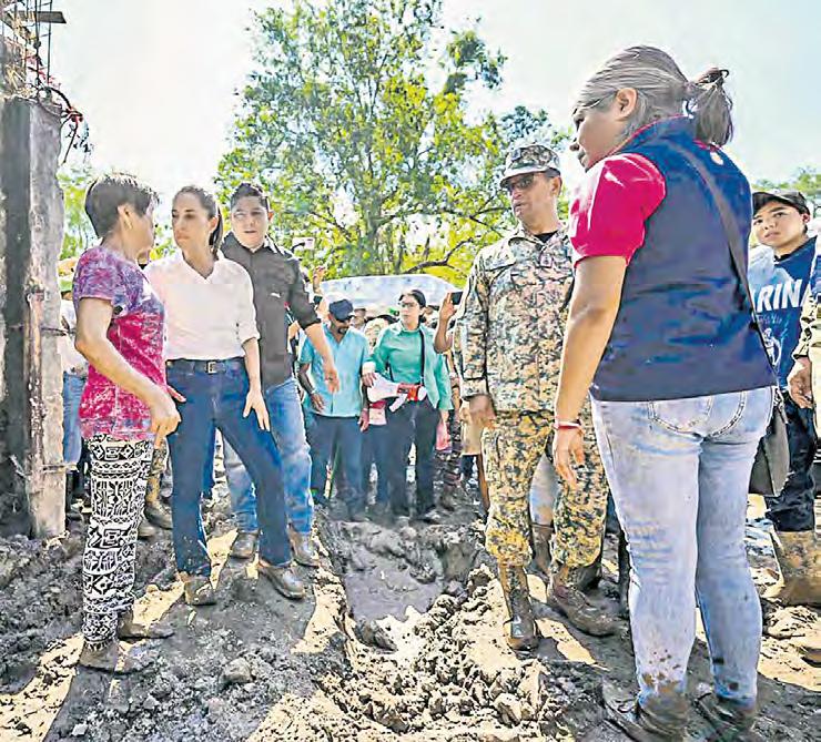 ▲ La jefa del Ejecutivo llevó a cabo ayer una gira por los municipios de Tamazunchale, San Luis Potosí, y El Higo, Veracruz, donde agradeció la “entrega incansable” de los elementos de la Defensa y la Marina para ayudar a los