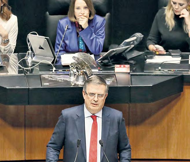 ▲ En su comparecencia ante el pleno del Senado, el secretario de Economía, Marcelo Ebrard, manifestó un “optimismo razonable” sobre la permanencia del
