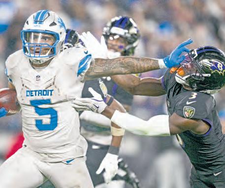 ▲ Los Leones de Detroit, impulsados por un demoledor ataque terrestre, se impusieron 38-30 a los Cuervos de Baltimore, en el partido que se disputó en el M&T Bank Stadium, en el cierre de la jornada tres de la NFL. Los corredores de Detroit David Montgomery y Jahmyr Gibbs