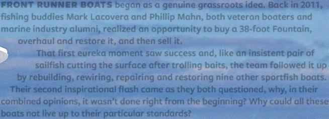 34 Front Runner 43 Cat A matter of balance. By Ken Kreisler