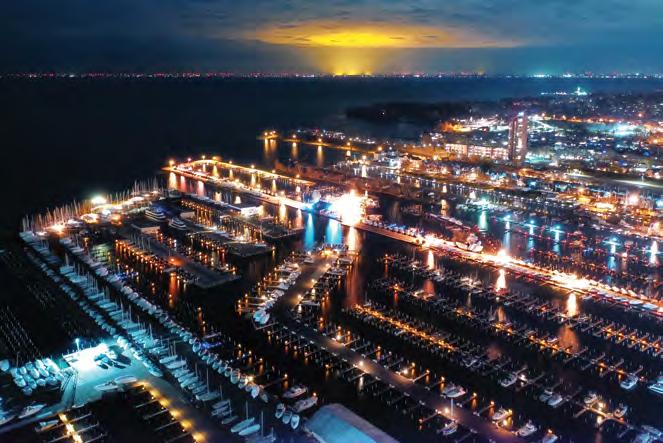 Nestled between Lakes Huron and Erie, Lake St. Clair is a convenient destination for many Great Lakes boaters (p. 40). This 430-square-mile inland lake offers tons of opportunities to relax in nature, partake in a fun event or explore the Nautical Mile.
