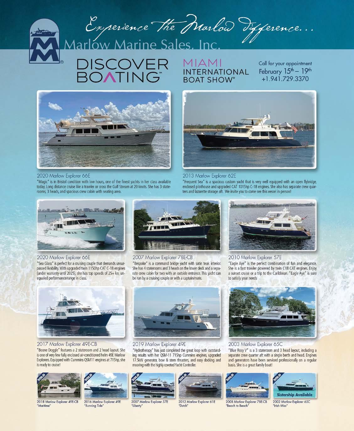 WWW.BAYMARINE.NET SALES@BAYMARINE.NET Sabre 48 Salon Express Sabre 43 Salon Express Back Cove 340 Riviera 4600 Sport Yacht Riviera 5400 Sport Yacht EDGEWATER 262CX EDGEWATER 248CX EDGEWATER 285CC ...AND DON’T MISS THESE 2023 FAVORITES CREVALLE 33 CSF CREVALLE 24 HCOHybrid! We will be at the MIAMI BOAT SHOW February 15-19 CALL TO SET UP AN APPOINTMENT! New Boats Available Now! EDGEWATER 170CC EDGEWATER 208CC EDGEWATER 230CX