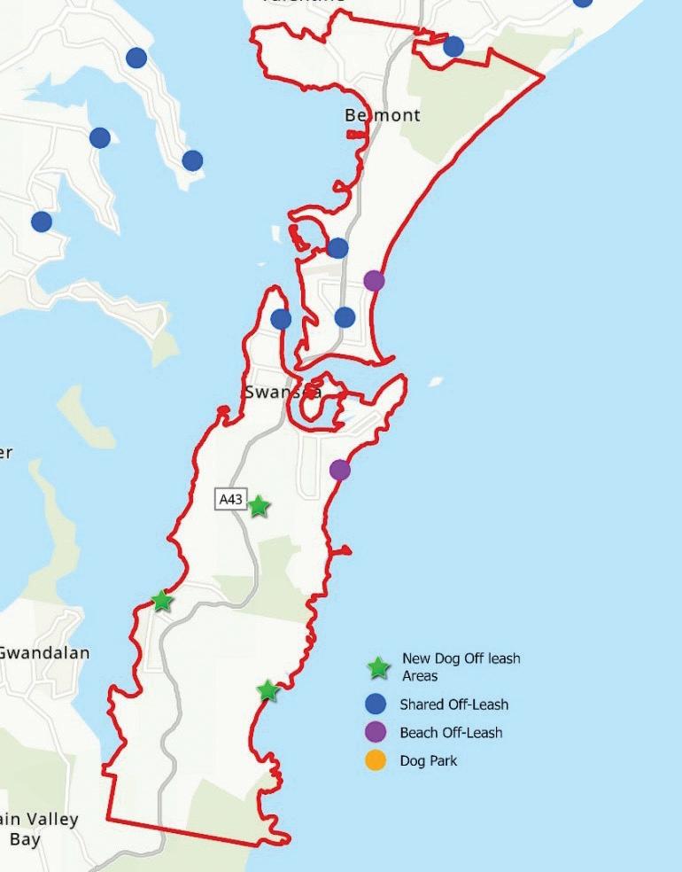 Bay Myuna Bay Foreshore Reserve, Wangi Road Leash free at all times Toronto Toronto Lions Park, Anzac Parade Leash free except during events
