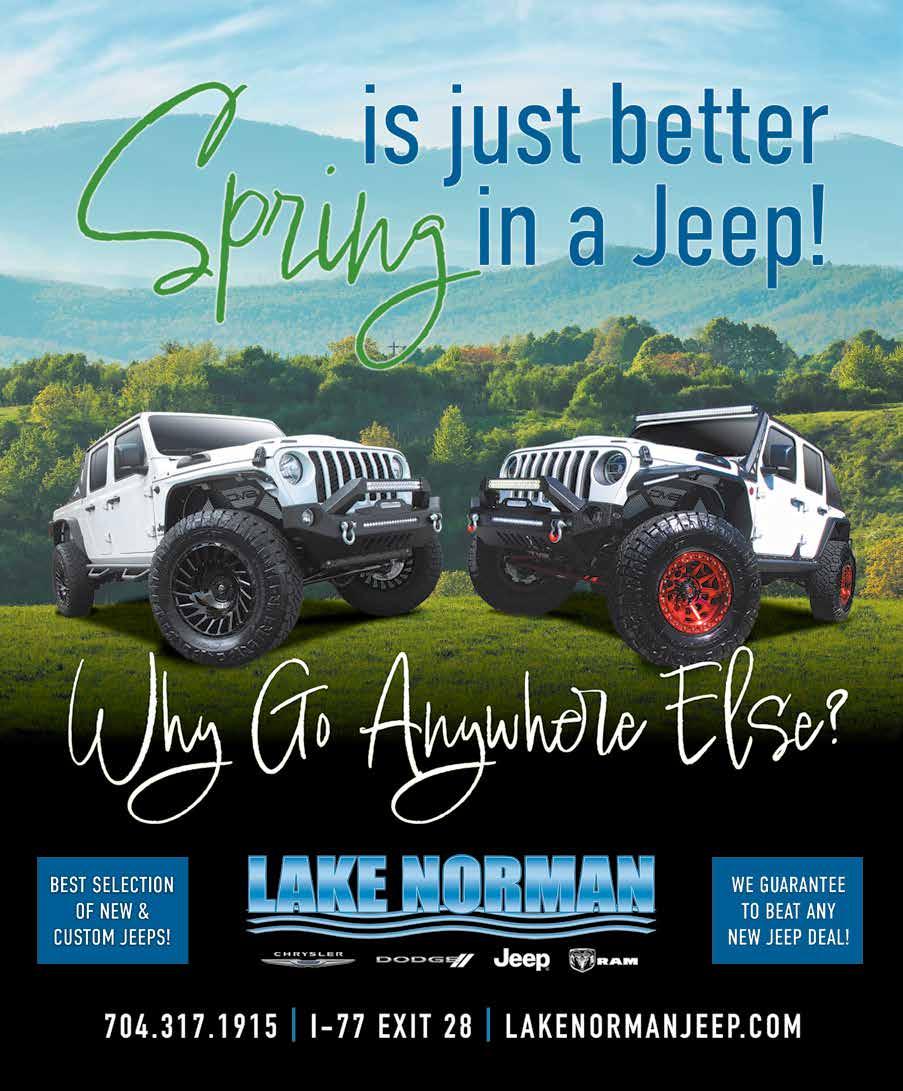 I hope you find some pleasant surprises in this month’s issue, much as I’ve been surprised by the easy openness and generosity of spirit from our Lake Norman neighbors and business professionals. And if you are so moved, let your eyes slide over to the facing page to learn how to recognize those professionals in our new and improved “Lake Norman’s Best” awards. Voting started at the beginning of this month, so please take a minute to recognize who you know to be the best around the lake. I wish I could vote for them all.