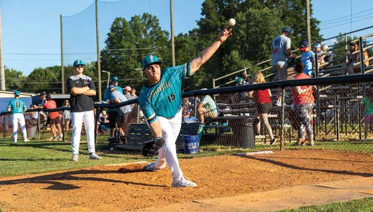 The Spinners are a summer college baseball team in the Southern Collegiate Baseball League. They’ve been playing their intense, twomonth long summer league schedule at Moor Park since 2014, and General Manager Phillip Loftin says this year, the heat is on to best their ‘three-peat’ championship record.