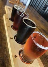 A few current beers in their rotation include the crowd pleaser Bout Damn Time, an amber lager; the Citrus Mishop, a Norwegian pale ale; and Bare’s favorite, Blonde Hair Suzy, a blonde ale. Bare is responsible for naming all the beers, most of which have a story behind them. In addition to their beers brewed on-site, they have several options on tap from other breweries around the U.S.