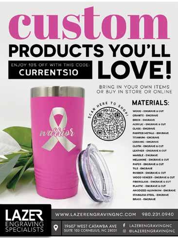 Two seasoned professionals named Lori Helms and Tony Ricciardelli will be taking over as co-editors starting with the November issue, and they are well-connected in the Lake Norman community and excited about continuing to produce content that will continue to spotlight the very best and brightest in our area. You can reach them at lori@LNCurrents. com and tony@LNCurrents.com. I’m excited to see what they do!