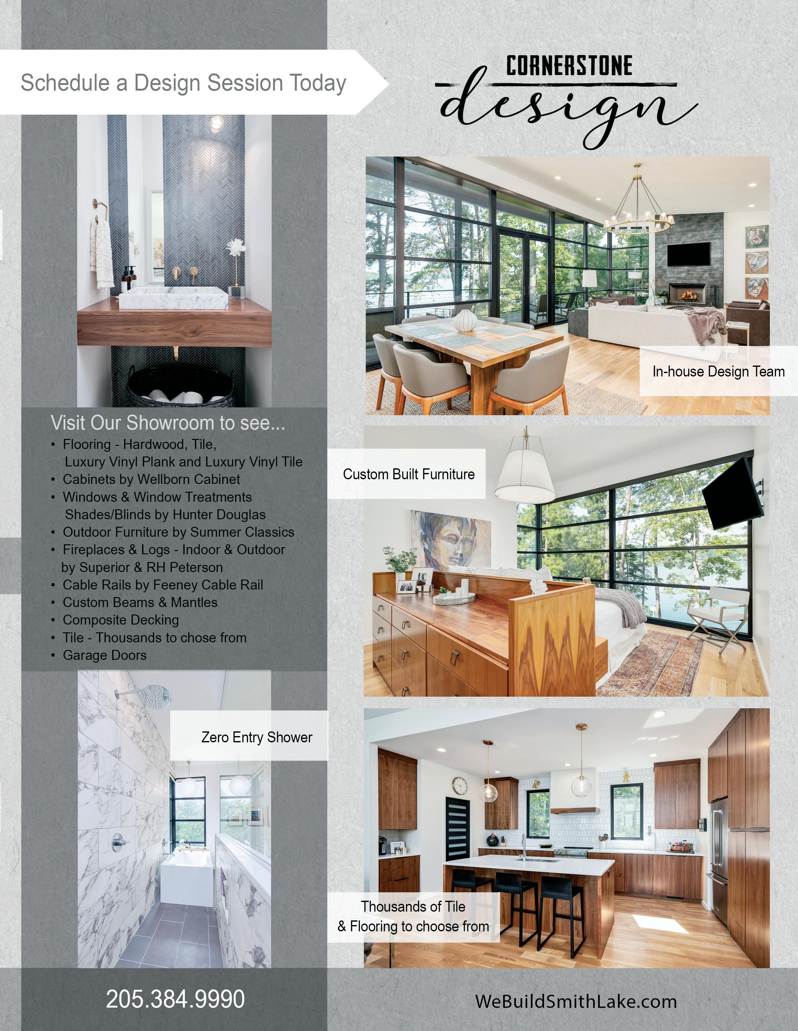 Nashville trio of sister singer-songwriters came home to quarantine on Smith Lake KT Signature Homes with Southern Accents Designer and Builder Kevin Thomas debuts his talents in a beautifully executed lakeside project, his own home Iaconni & Hunnicutt Professional wakeboarders bring their talent to Smith Lake to coach local riders this summer