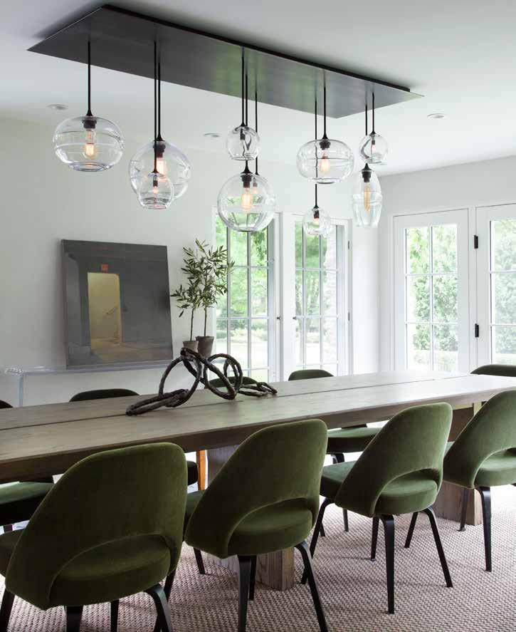 “French doors, a rustic table and mossy green chairs make the dining room feel like an extension of the garden.”