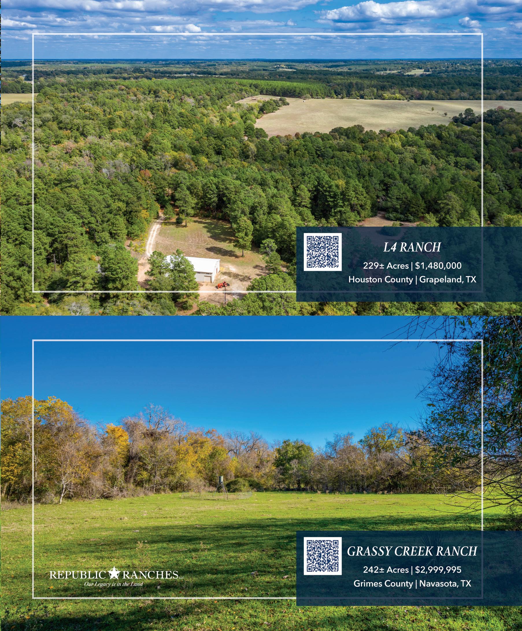 ©Copyright 2023 CoStar Group. All rights reserved. No part of this publication may be reproduced without written permission from the publisher. LAND Magazines are published by CoStar Group, 100 Congress Ave, Suite 1500, Austin, Texas 78701. Information provided to CoStar Group is deemed reliable but not guaranteed. The publisher will not be responsible for any omissions, errors, typographical mistakes or misinformation within this publication. Measurements and figures are approximate. Properties are subject to errors, omissions, prior change or prior sale. The real estate advertised in this magazine is subject to the Federal Fair Housing Act of 1968 and it’s amendments. This magazine will not knowingly accept any advertising for real estate which is in violation of the law. Dwellings advertised in this magazine are available on an equal opportunity basis. Printed in the USA.
