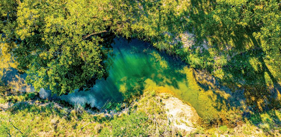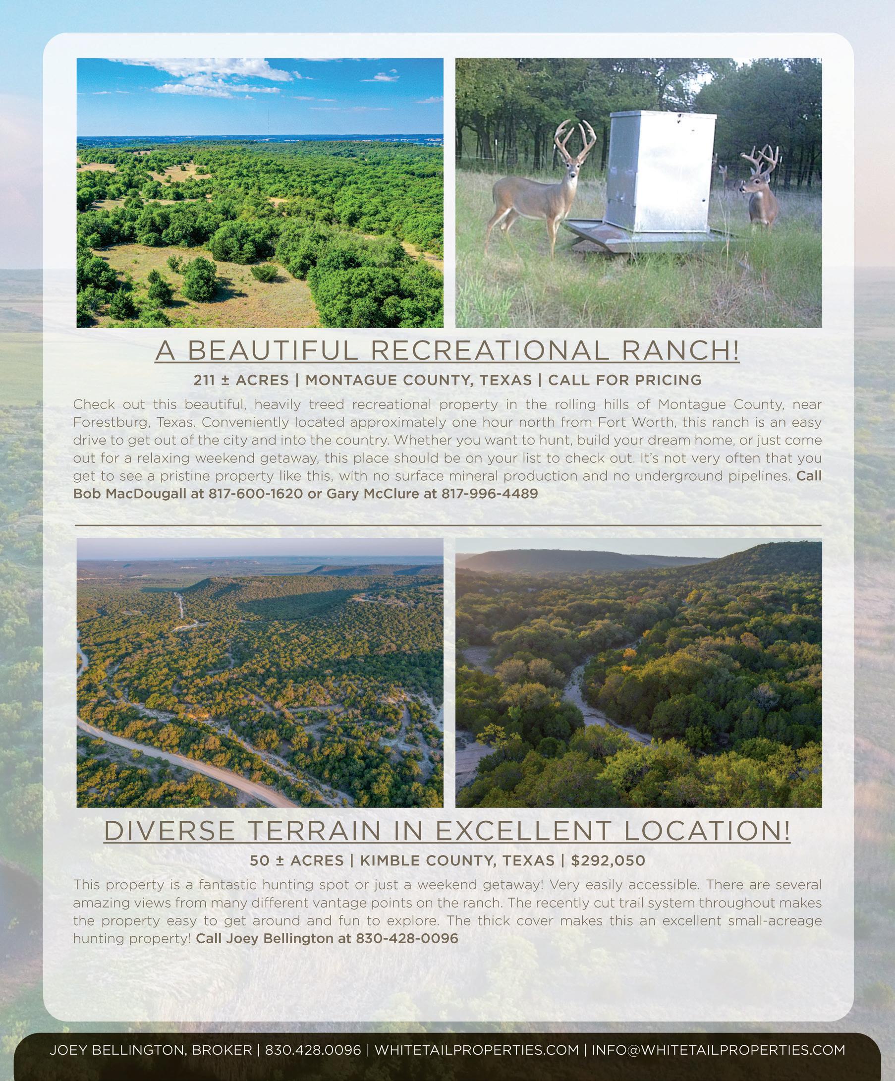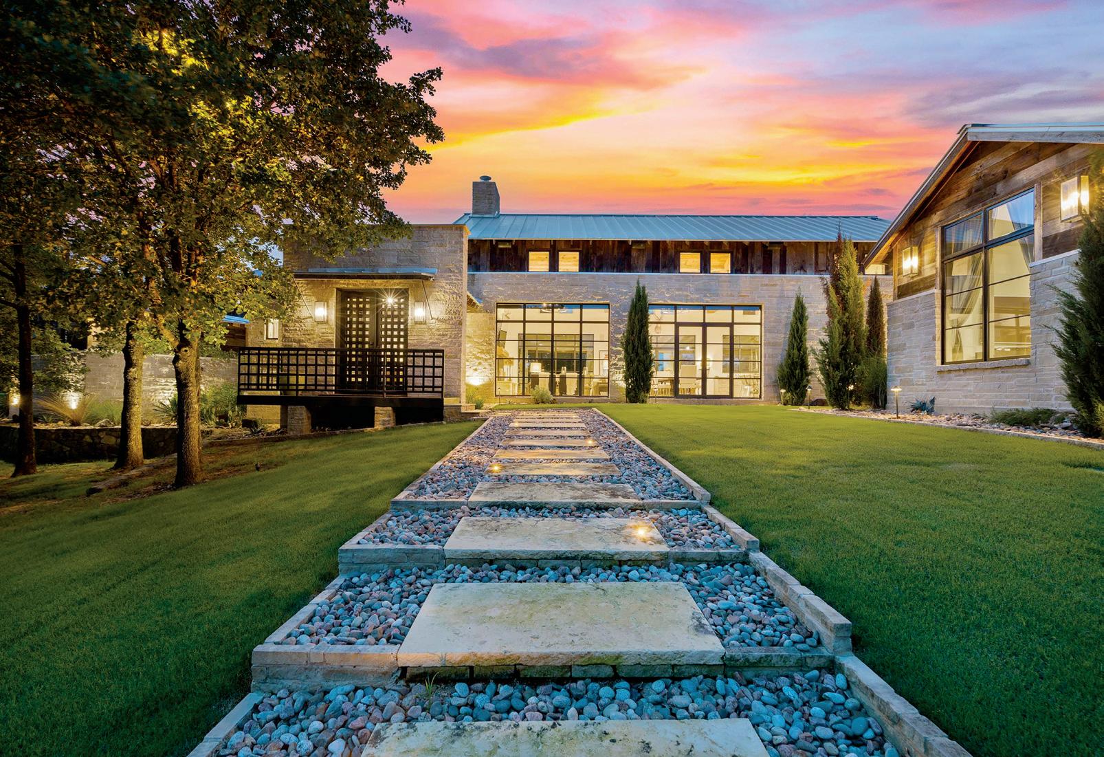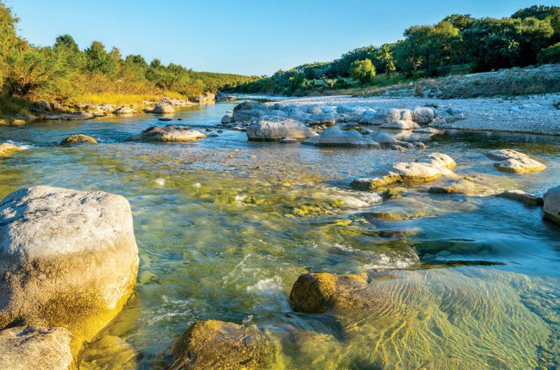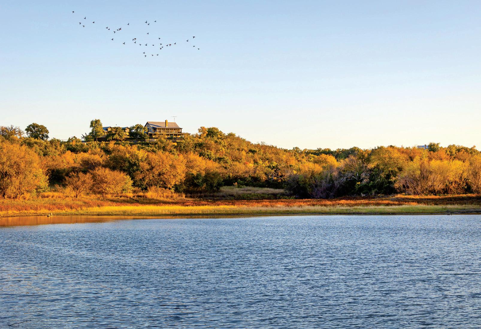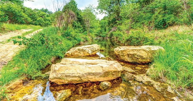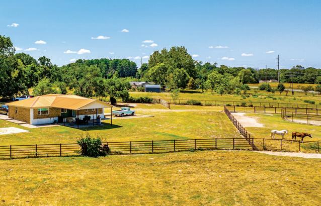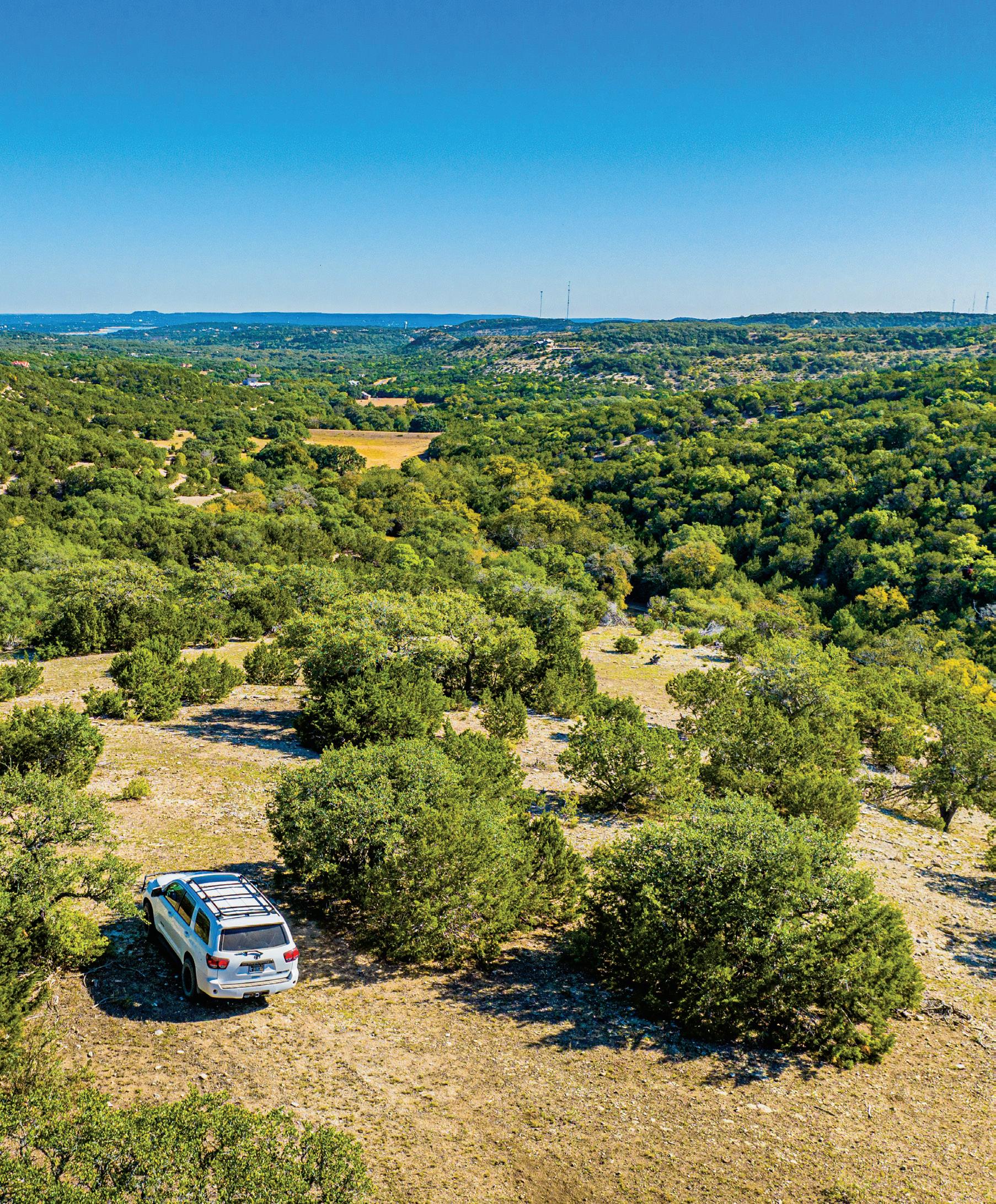 COMFORT, TEXAS Close proximity to Kerrville, Fredericksburg, and Boerne. This 191-acre ranch features three ponds, beautiful hills, and nice fields. Perched on top of a hill, with views for miles, is a stunning modern farmhouse-style home surrounded by fifteenfoot porches. You will find gorgeous stone walls, vaulted ceilings with white oak wood beams, hand-made custom lighting from Mexico, and wide plank mesquite wood floors as you enter the home. There is a fabulous chef’s kitchen featuring a Wolf range with double ovens, a pot filler, a vent hood set in stone, two Sub-Zero refrigerators, freezers, four refrigerator drawers, custom-built cabinets by Michael Edwards, a large island with a granite top, and a farmhouse sink. The kitchen is open to the dining room, wet bar, and living room with an amazing fireplace and hill country views through the accordion-style glass and metal frame doors. The bar boasts a gorgeous mesquite wood counter with a beverage refrigerator and ice maker. The spacious master wing is host to a wonderful office, a large bedroom with a sitting area, a spa-like bath with travertine floors, a walk-in shower, a soaking tub, beautiful vaulted ceilings, a coffee bar, and a closet with custom builtins. The guest wing features two bedrooms with spacious baths and a game room. Outside you will find a four-car garage with a lift to floored climate-controlled storage. This is the perfect property for the most discriminating buyer.