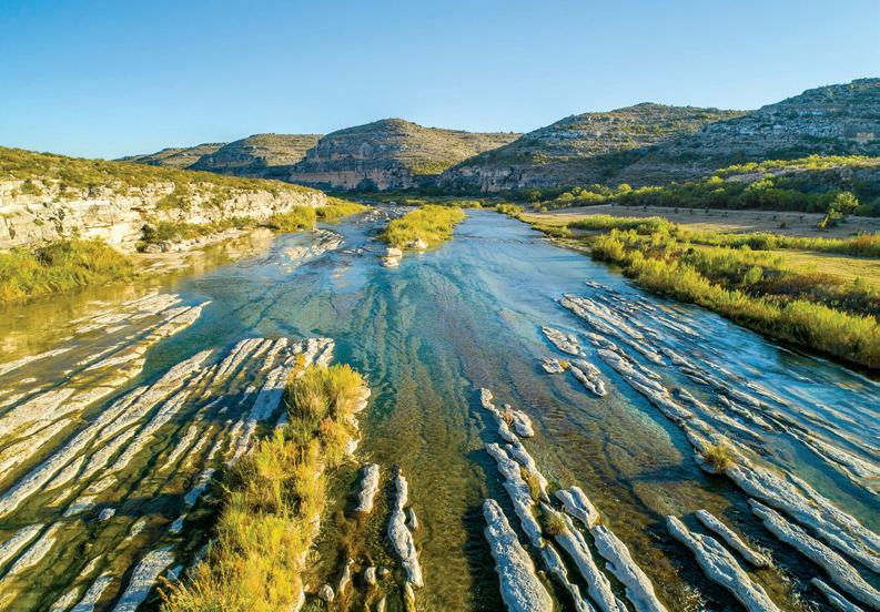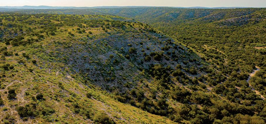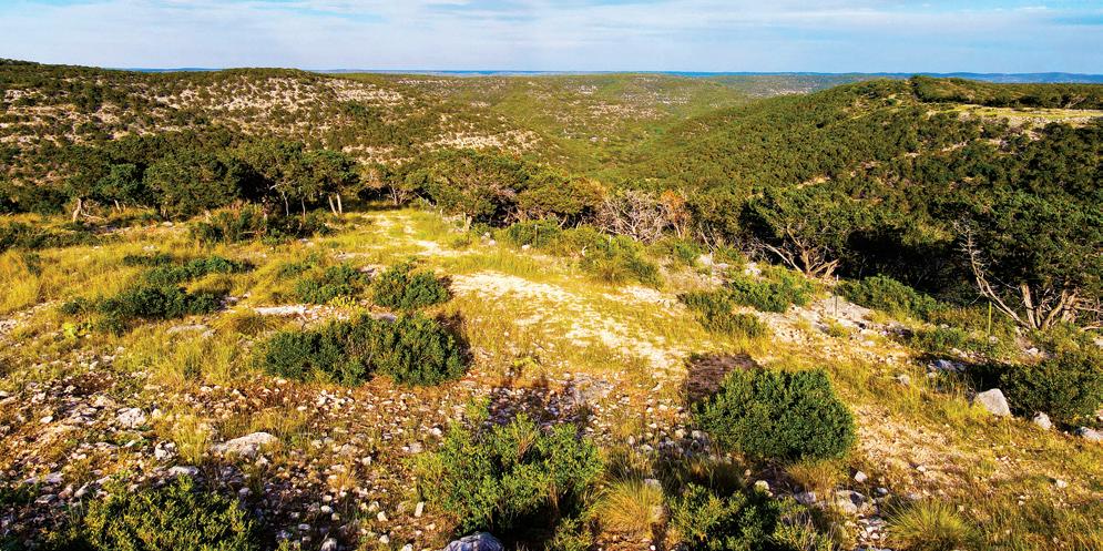 The Nineteen Mile Ranch is an 8,440-acre, low-fenced ranch with live water features, large mature trees, extreme topography changes, and easy access highway frontage. The ranch was recently improved with the addition of a limestone rock lodge. The lodge is located in one of the most picturesque settings on the property, just above the Nueces River overlooking a manicured meadow full of large trees and native grasses. $18,568,000 8,440± ACRES IN UVALDE COUNTY • PROPERTY ID: 14949712