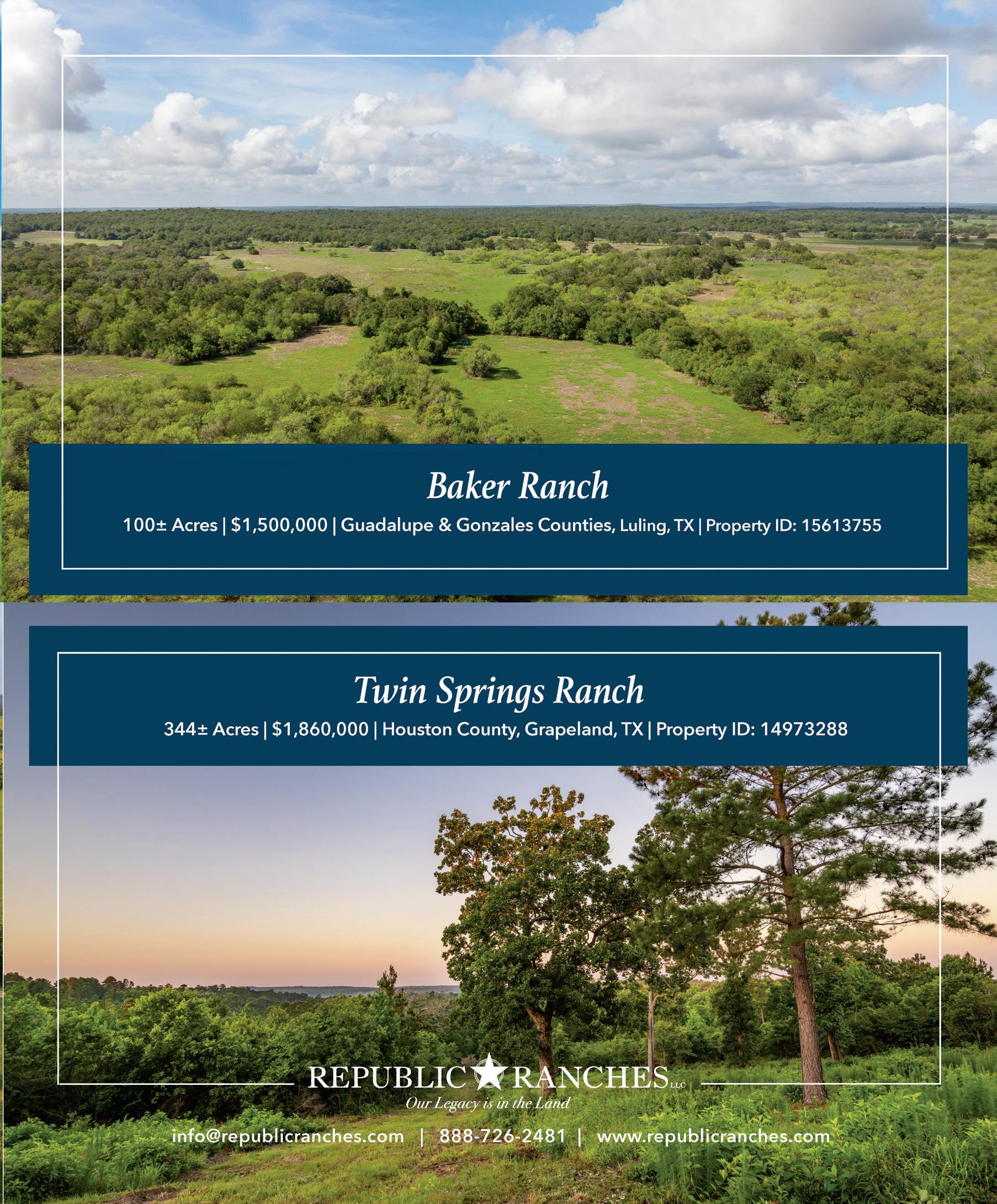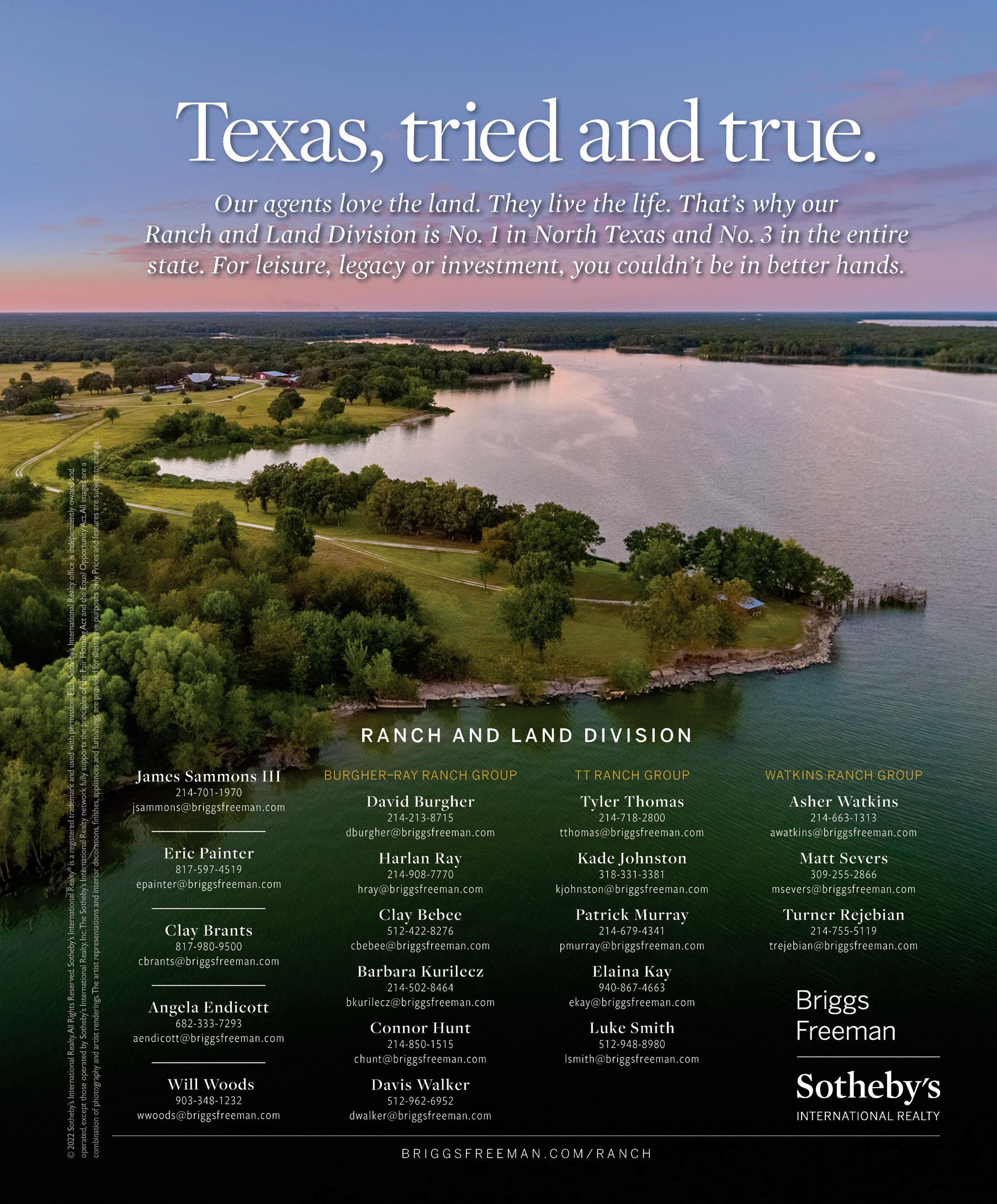 TOM ALEXANDER Publisher talexander@land.comDr. Charles Gilliland grew up on a cattle ranch and graduated from Regis College in Denver, Colorado. He currently holds an appointment as a Research Economist with Texas Real Estate Research Center at Texas A&M University and an appointment as Adjunct Associate Professor of Agricultural Economics at Texas A&M University. Dr. Gilliland is a Helen and O.N. Mitchell Fellow of Real Estate and a Clinical Professor of Finance teaching real estate investment analysis for the Master of Real Estate program at the Texas Real Estate Research Center at Texas A&M University. Find out more at RECenter.tamu.edu