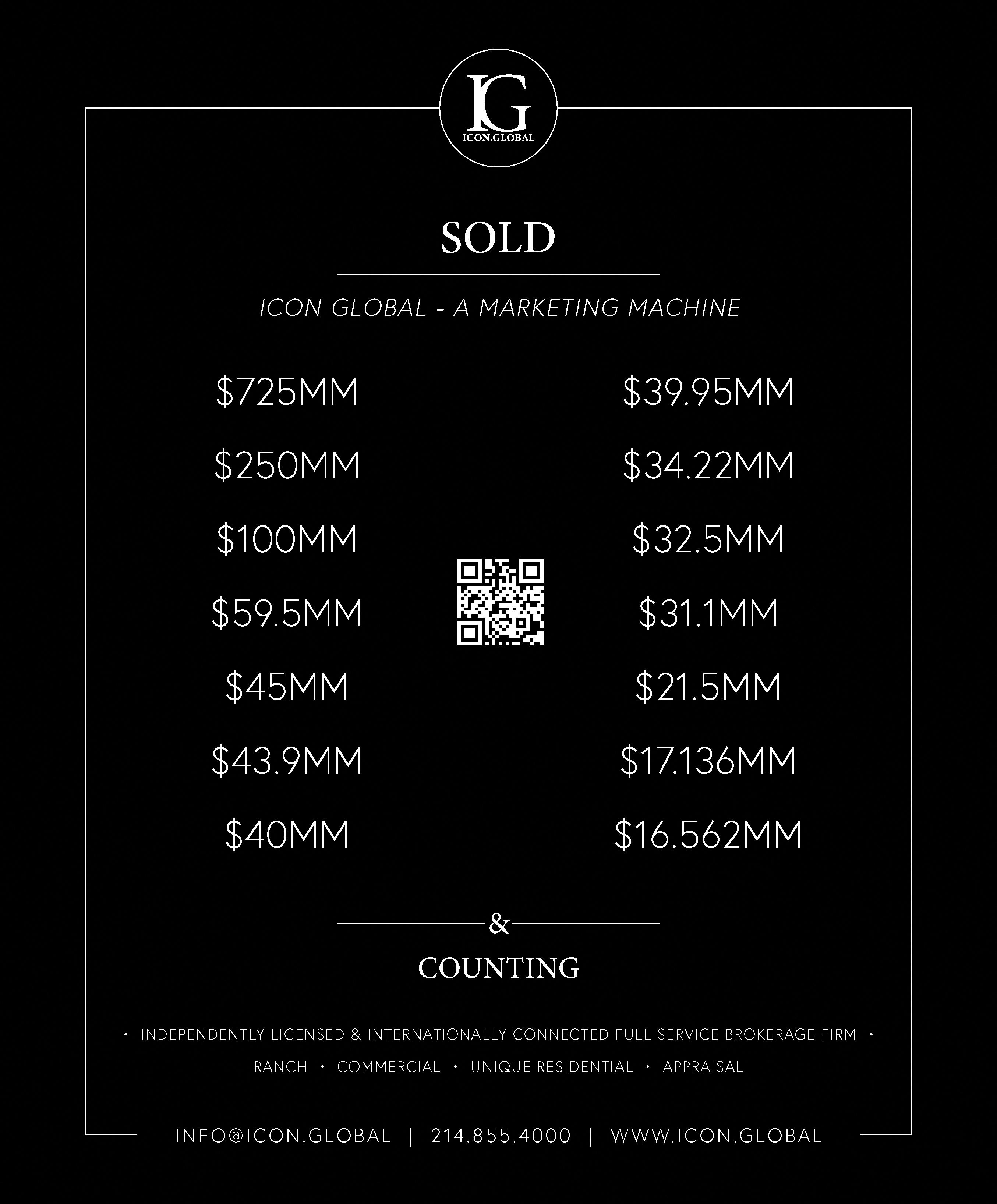 4 Icon Global Icon Global Reported Sold Price: $27,000,000 1,500± Acres | Hood County