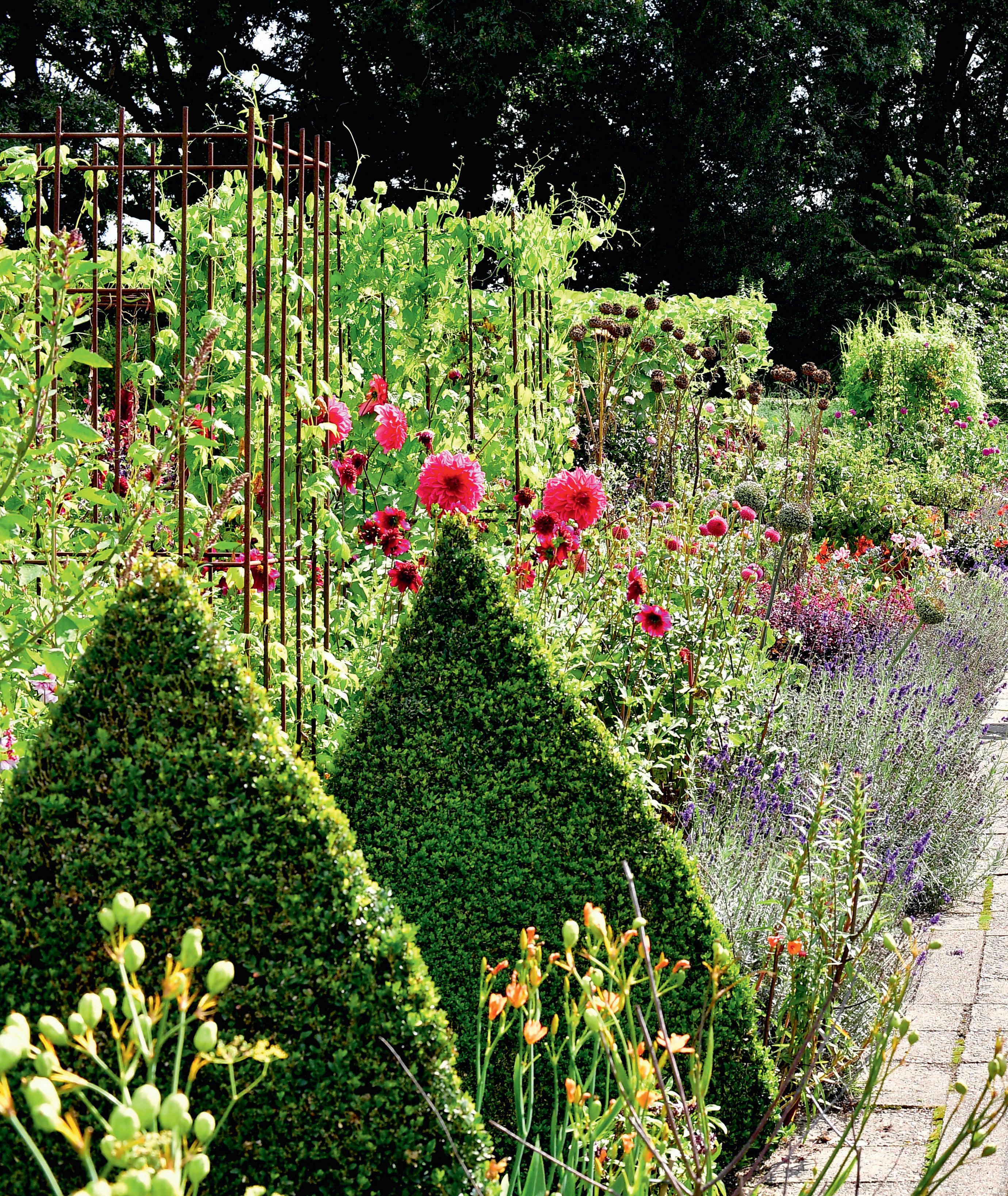 Groene sla komt er niet in en ook gewone boerenkool is te ordinair voor de moestuin van De Boschhoeve. Maar nog wonderlijker dan wat er niet in komt is wat er niet uit gaat. Want oogsten, daar draait het hier niet om. “Onze groentecombinaties zijn zo mooi, daar kan geen sierborder tegenop.”