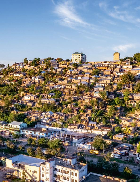multitude of mosques and homes dating back as far as the 13th century. Itsandra was one of the island’s two sultanates, along with Moroni – now the capital of the Comoros. The old town of Moroni is a maze of alleyways and tightly packed homes while its harbour is dominated by the town’s oldest mosque, the Ancienne Mosquee du Vendredi, which, as its name suggests, still hosts Friday prayers.