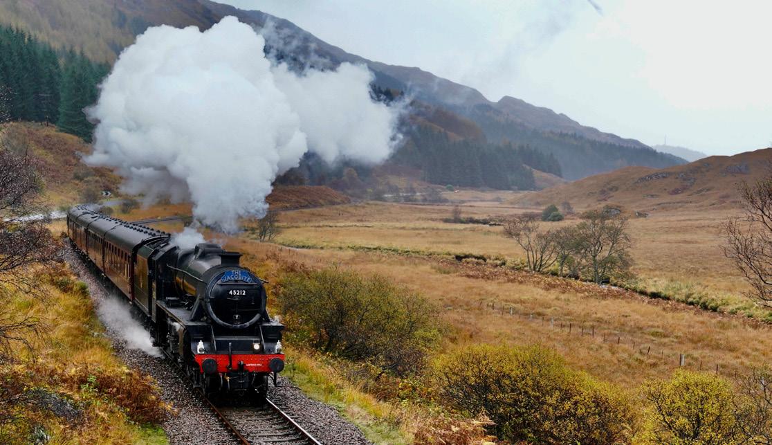 From Fort William to Mallaig (return). Described as the greatest railway journey in the world. Runs: 7 days a week April - October. Departing 10.15 and 12.45. Book online www.westcoastrailways.co.uk