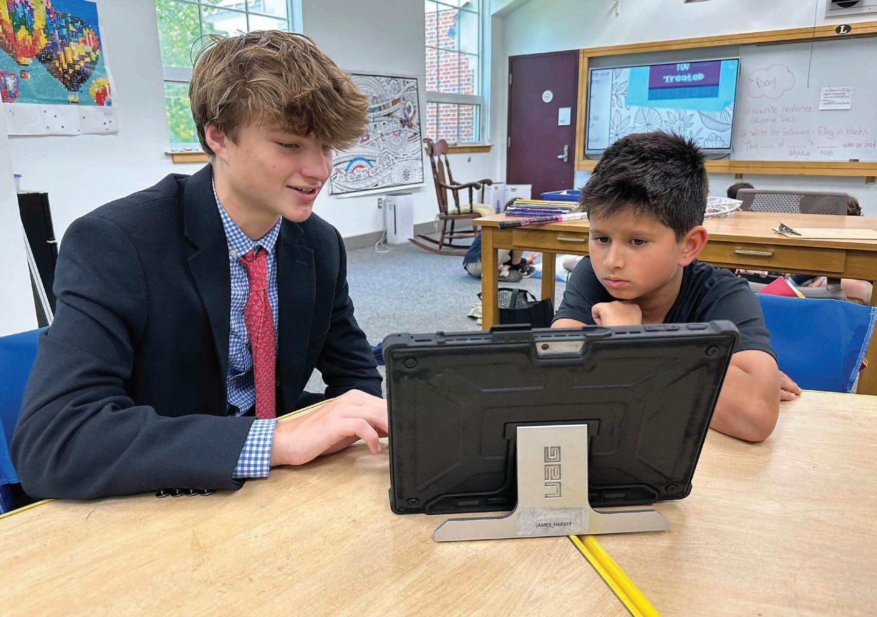 The design of the Boehly Upper School lends itself to organic Teacher-CoachMentor moments, whether it’s a check in with Bill Zaiser (pictured above) or benefiting from the wisdom of Steve Sorkin (pictured right).