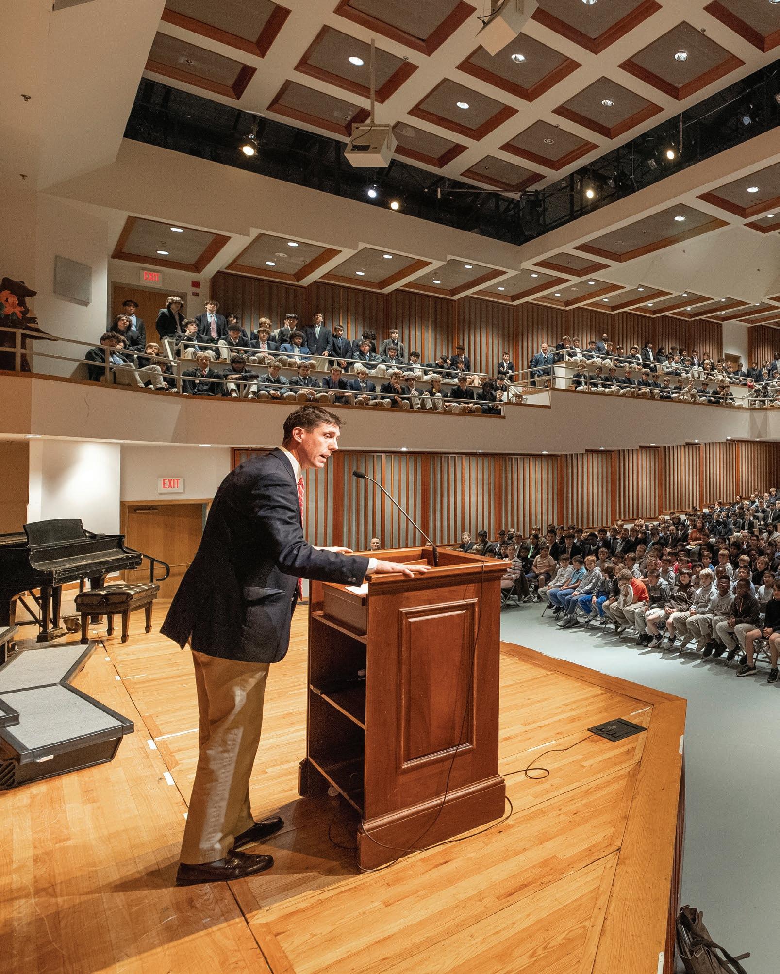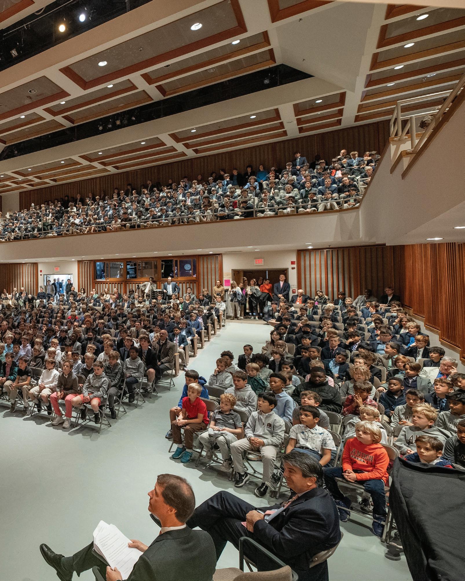 Students in the Middle and Upper schools attend more than 100 ethics assemblies throughout the year, which include speeches presented by their peers and faculty.
