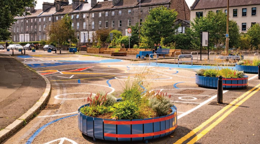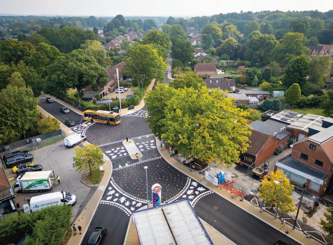 Perhaps the most eye-catching project featured here, up against stiff competition, is California Crossroads in Wokingham, Berkshire. The once people-unfriendly junction has been re-configured, with footway paving, carriageway leaf patterns, new planting, bespoke bollards, improved drainage and totems co-designed with local schools. Analysis of the first six months of operation reveals that the space has become an inclusive environment, safer for pedestrians and cyclists.