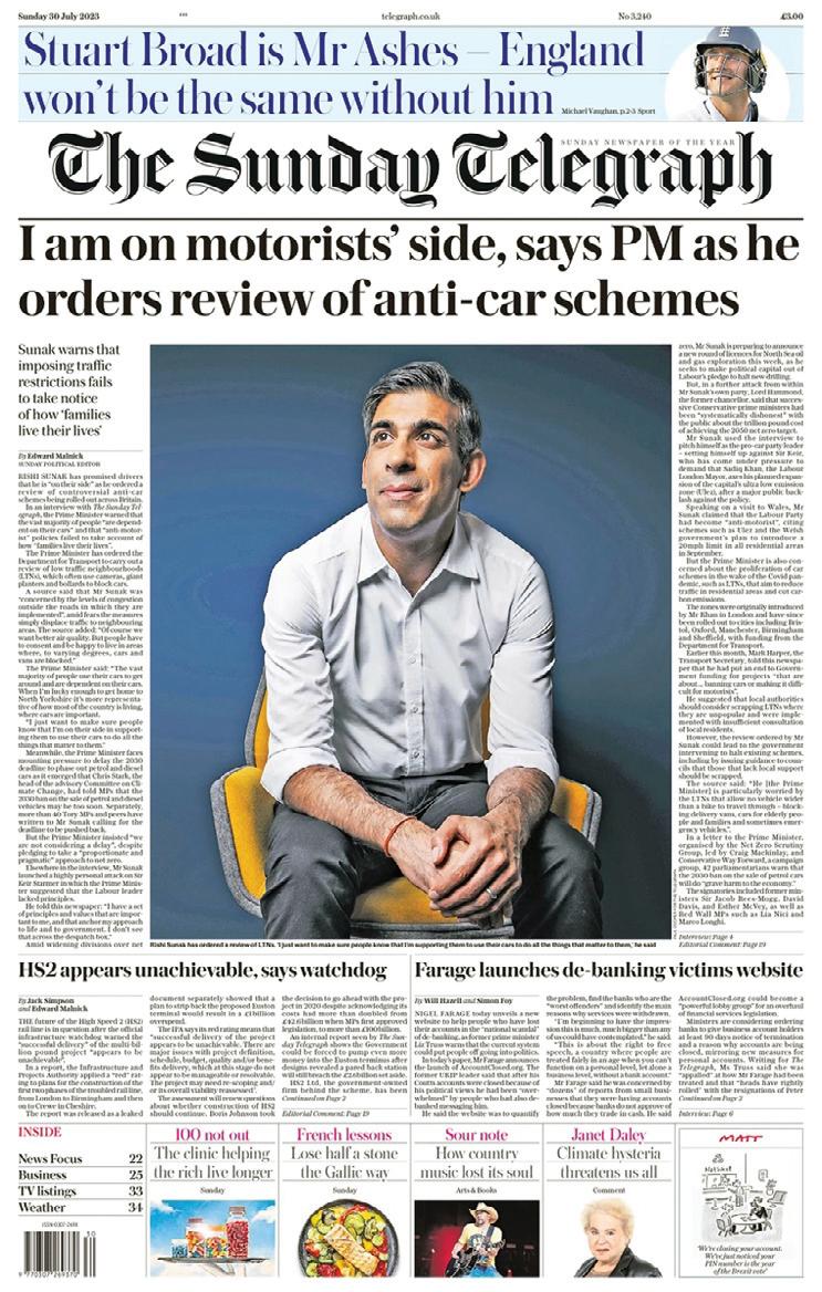 In his Sunday Telegraph interview, Sunak said: “The vast majority of people in the country use their cars to get around and are dependent on cars. I just want to make sure people know that I’m on their side in supporting them to use their cars to do all the things that matter to them.”